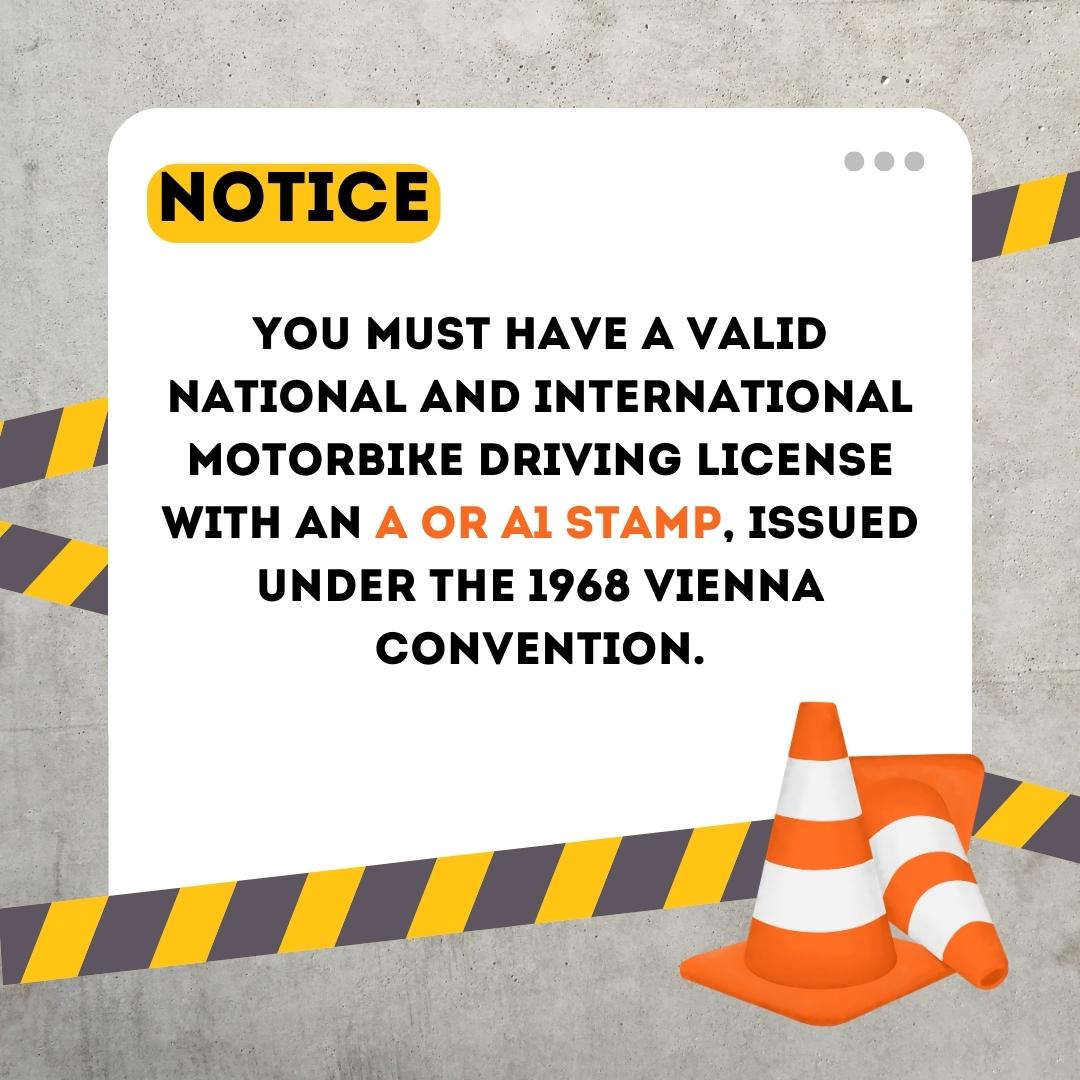 To rent a motorbike in Vietnam, you'll need an International Driver's License (1968 version) stamped in section A or A1, and your country must be one of the 85 nations participating in the 1968 Vienna Convention. Not sure if you're eligible? Contact us, and we’ll be happy to guide you through the process.